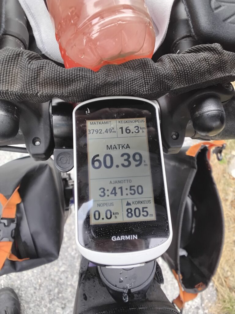 Tie alkoi tasaisena ja otin siinä alussa pari kilometriä extraa kun tie oli poikki. Näytti aika moni muukin pyöräilijä siellä seikkailleen. Aika alussa tuli pieni mäen tömpäre, tais olla 2,5 km nousu. Saihan siinä pään märäksi ja jalat lämpimäksi, mutta ei niin lyhyttä voi vielä mäeksi kutsua.